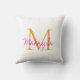 Modern Monogram Pink Script Name Throw Pillow