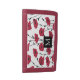 A simple nylon wallet that seems very durable. The design on front (Reiki) is very special. The red color of the wallet is attractive. Very satisfied with the print.
