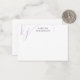 Stylish personalized note cards with fancy calligraphy script initials or monogram and name in your choice of colors (shown in purple). CHANGES: The text font style, color, size and placement can be changed in EDIT. ASSISTANCE: For help with design modification or personalization, color change, resizing, transferring the design to another product or if you would like coordinating items, contact the designer BEFORE ORDERING via the Zazzle Chat MESSAGE tab below or email makeitaboutyoustore@gmail.com.