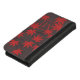 Stylish red and grey monogrammed iphone wallet with elegant maple leaf art.