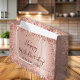 Girly Glam Modern Rose Gold Glitter Foil Monogram Name 60th (or ANY AGE) Custom Personalized Gift Bag. This Girly Adult feminine NINETY (NINETIETH) Birhday party design featuring a "Happy Birthday" text in a stylish handwritten calligraphy script, Monogram Name and date and age on blush pink or rose gold faux brushed metallic foil look background with loose glam glitter frame. Ideal for a feminine adult or girly milestone birthday celebration, this perfectly captures the essence of a modern rose gold or blush pink glitter sparkle girly birthday party.