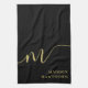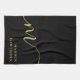 Modern Monogram Script Calligraphy Black Gold Name Kitchen Towel