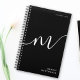 Modern Monogram Script Calligraphy Black White Name Planner. Easy to customize elegant script typography monogram. Perfect monogrammed name gift idea!