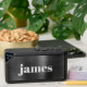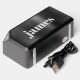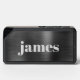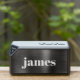 Minimal modern bluetooth speaker featuring your monogram name in trendy bold white typography on a dark silver / black faux metallic background. You can adjust the size of the text in the design tool for shorter and longer names.