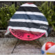 Soak in the sun in style with this stylish modern beach towel featuring a stiped design in black, white, blue and red. Personalize it by adding your own graphics or text with the Design Tool. One text line is provide in white text for your monogram, name or special quote.