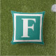 Modern Monogram Teal White Initial Minimal Outdoor Pillow