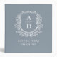 Modern Monogram Wedding Dusty Blue Crest 3 Ring Binder