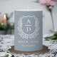Modern Monogram Wedding Dusty Blue Crest Pillar Candle
