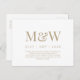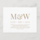 Modern White Gold Monogram Wedding Invitation Postcard. Modern typography with couple's initials in elegant antique gold colored text on white. Personalize with the bride and groom's names, wedding date, wedding venue and adjust the invitation sample text and or colors as you wish. Please visit our store, Austen & Grace, to view the full wedding suite, matching products and more, and please contact us if you require any assistance contact@austenandgrace.com