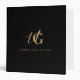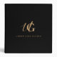 Minimalist gold monogrammed script against a black background. Easily customize name of choice on front and spine of binder.