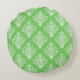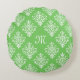 Modern Monogrammed Bright Green Damask Pattern Round Pillow