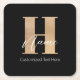 Modern Monogrammed Initial H & Name Personalized Square Paper Coaster