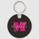 Stylish monogram initial and your first name in chic pink and white lettering on black are featured on this fun key chain.