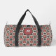 Modern Monogrammed Script Stylish Black Red Duffle Bag