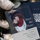 Capture the mood of your wedding celebration with this sophisticated Save the Date. Featuring a cinematic photo layout and a minimalist Navy Blue & soft silver aesthetic, this design includes a customizable QR code on the back to seamlessly direct guests to your wedding website. Perfectly suited for modern, urban, or romantic weddings.