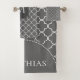 Modern Moroccan Pattern Grey Monogram Bath Towel Set
