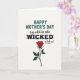 This card features a simple graphic layout on an off-white background, keeping the focus on the words and a single flower. Near the upper center, a large seasonal greeting appears in muted forest green, set in a straightforward, modern type style. Just below it, a smaller cursive line in black adds a more intimate note, like a quiet aside between close friends ❤️. Under that, a strong black word sits on its own line and is crossed out with a dark strike-through, hinting at a teasing correction that feels flirtatious rather than harsh. Immediately after, a smoother cursive phrase in black follows, softening the message into something more affectionate and charming. Centered beneath all the text is one deep red rose, its layered petals shaded with subtle crimson tones and surrounded by dark green leaves. The rose’s slender stem angles slightly downward against the pale background, with a small leaf curling outward near the lower right 🌼.
