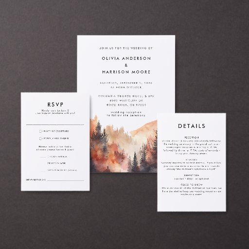 Modern Watercolor Fall Mountain Range WeddingDesigned by Martina K.B.