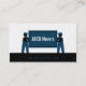 Modern, sleek business card with a colour palette of blue, black and white. The business card has two movers who are wearing blue hats and overalls, moving a huge box delicately. You can personalise the box with your business name. Great business card for anyone who are in the trucking, delivery, hauling services, logistics or moving businesses. Personalise easily with your business details.