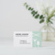 A modern looking business card with silhouettes of hedge shears, a lawn rake and spade over a pastel green background. It communicates a sense of tidiness and order perfect for those in the business of lawn mowing and maintenance, weed control and landscaping. Personalize with your business information in the text templates provided. You can change the background colors to fit your corporate colors.