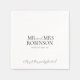 These black and white modern minimalist wedding paper napkins are the perfect decor detail to your wedding celebrations, rehearsal dinner, wedding drinks reception, engagement party or more! The wedding napkin features the contrast of 'Mr' 'Mrs' in classic serif with 'and' in script calligraphy font. Customize the text with your married surname, with your wedding date underneath. The bottom of the napkin says 'let's get this party started' in cursive script font for an added modern twist. Use the 'edit in design tool' feature to customize all fonts, wording, font colors, background colors and more.