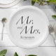 Modern Mr. and Mrs. Script | Black & White Wedding Paper Plates