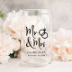 Give a wedding toast and your wedding guests a fun souvenir keepsake of your special day with this custom can glass featuring "Mr & Mrs" in a large elegant script and an illustration of two wedding rings joined together. Add your name and wedding date.