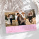 Elegant and stylish save the date card featuring a modern serif font that says "save the date" with your signature in a hand written style font. There are 3 photos on the front and one on the back. The background is orange pink.