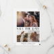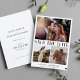Simple elegant trendy engagement photo collage double sided wedding save the date card in neutral black and white. Suitable for modern spring, summer, fall, or winter weddings.