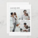 Leave a lasting impression on your guests with our contemporary and minimalist Save the Date invitation. Showcasing multiple captivating photos of the wedding couple, this customizable invitation creates a treasured keepsake. The reverse side features a monogram, and you can also choose to incorporate a link to your wedding website if desired. This refined yet simple design reflects your unique style while informing loved ones of your impending union. Create an unforgettable wedding experience with this personalized invitation.