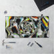 This desk mat features an abstract, psychedelic spiral fractal art in black and white with yellow, orange, blue, and green accents. Great for gaming rooms or boys’ bedroom.