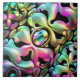 This tile is decorated with a trendy iridescent pattern. It has different color reflections depending on the angle of view and the light. The abstract pattern uses different shades of color to create an iridescent effect. This type of tile is often used to add texture and color to a room, and can be used to create an interesting focal point in a kitchen, bathroom or other living space.