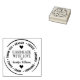 This modern "Thank You" Handmade with Love rubber stamp features a modern design with multiple languages and a custom name.