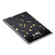 This modern and abstract design features broken gold music notes on a black background and custom text in white handwritten calligraphy script and typography. This is a great notebook for the music lover, music teacher, or musician.