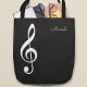 Your own name on a stylish music_tote_bag with the graphic image of a treble clef