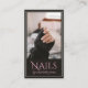A modern nail technician or salon photo business card with your signature in a trending script style. Simple modern minimal style. You must replace this photo with your own nail model photo. Bold decorative typography, paired with a rose pink script name.