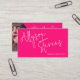 A modern and bold simple makeup artist and hair stylist business card featuring oversized name at the front in a handwritten style font and photo, qr code and social media at the back on hot neon pink. All the colors are editable.