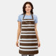 Great color and even though I ordered the kid size, it covers well enough to use during the holidays. I am not a big woman and prefer a shorter apron. I stand 5"6" and the length of the garment goes to mid-thigh. The tie straps fit well at my waist and even though there is no neck strap adjustment, the opening is plenty big enough. I am happy with the size and fit. I am sharing my apron with my 10 year old grandson, too! The color is vibrant and looks good, as shown on the website. The stitching looks strong and reinforced. Photographed is front side and back side of the apron, reinforced straps and coloring. My phone camera may not be the best at showing the details.