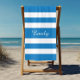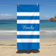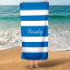 Personalized Modern Name French Blue Striped Pool Beach Towel.