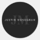 Modern Name & Monogram | Grey & Black Classic Round Sticker