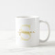 Trendy classic mug featuring a large monogram initial and script name on both sides in blond and goldenrod colors. Change name & initials using the Template provided. See "About This Product" at side for additional information.