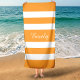 Personalized Modern Name Orange Striped Pool Beach Towel.