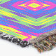 A quality printed throw has its advantages. This is a much finer weave throw than its loopier cousins, and though lighter, it is worth the investment for custom room accessorizing. The back is much prettier than the typical brown, and the fringe on the long sides very vivid, the selvage nicely done. Before photographing, I washed the throw in cold water, delicate, with a thicker woven throw the same size. On tumble dry low, this throw was dry in half the time as the other. This is a very practical quality if you use throws for furniture covers or to wrap up in frequently. The sleekness of the fabric makes it a great layer for accenting or protecting without the feeling of sitting on too much stuff. Perfect for napping or when you feel a light chill coming on. The color printing is beautiful and on this fabric, matched the design and color of my Photoshop image. This is an advantage for blending room fabrics and colors. The fringe on the short sides prints the colors from the design image and therefore varies from the side fringe. I streaked a white fractal line through the plaid pattern to give the illusion of weaving. This printed as crisp as an illusory thread, and put some white in the short side fringe, showing another advantage of print vs loomed- for artistic purposes, line lines, detail, and color integrity can be planned and preserved. My loomed throws have color limitations and more of a needlepoint texture. Print throws reproduce an exact image. The throw felt a little stiff straight out of the package, but this went away in the first delicate wash. Of course I searched the wash water for ink or bleeding and there was none.
