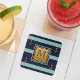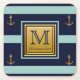 Modern Nautical Anchor Blue Gold Monogram Square Paper Coaster