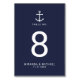 Modern Nautical Navy Blue Anchor Wedding Table Number