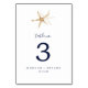 This modern nautical starfish table number is perfect for a cruise or beach wedding. The simple design features gold starfish. The card prints on the front and back (double-sided). Items are printed exactly as they appear on your screen when you add to cart, so personalize and add each table number that you need to your cart individually.