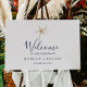 This modern nautical starfish wedding welcome foam board is perfect for a cruise or beach wedding. The simple design features gold starfish. Customize the foam board with the name of the bride and groom, and the date of the wedding.