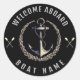 Modern Nautical Welcome Aboard Boat Name Anchor Classic Round Sticker