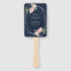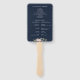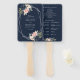 A navy blue themed wedding program fan with watercolor blush pink and navy blue flowers. You can edit the text and colors. For further customization click on the personalize further link.