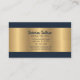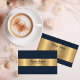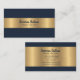 Modern Navy and Brushed Gold Business Card. This name and organization personalized business card with a navy blue background and brushed gold stripe is appropriate for use in any type of business wishing to market their own products and/or services in a successful manner. Names, titles and choice of fonts can be easily inserted by using Zazzle's design tool.